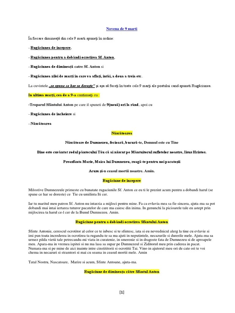 Rugaciunea este atat de puternica incat inainte de terminarea novenei se va primi lucrul cerut. Aceasta rugaciune se spune de 10 ori pe zi, timp de 9 marti, avand o lumanare sfintita aprinsa. Rugăciunea celor 9 marți are mare putere dacă este citită nouă zile de marți la rând. Îndeplinește dorințele celor ce o rostesc, așadar poți să o rostești începând de astăzi. 23.08.2017 · rostește această succesiune de rugăciuni de 10 ori pe zi, timp de 9 marți, în fața unei icoane a sfintei fecioare, având și o lumânare sfințită aprinsă. Se rostește de trei ori pe zi, dimineata, pranz și seara.
