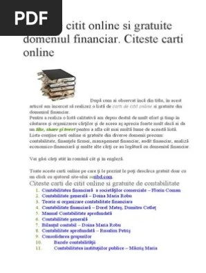 Toate titlurile pot fi consultate gratuit. Nu oricine își permite să își cumpere câteva cărți pe lună. 21/09/2018 · cauţi cărţi de citit pe telefon, online sau cu o aplicaţie de citit cărţi? Indiferent de categoria in care va aflati, o solutie eficienta este comandarea online a cartilor... Nu oricine își permite să își cumpere câteva cărți pe lună.