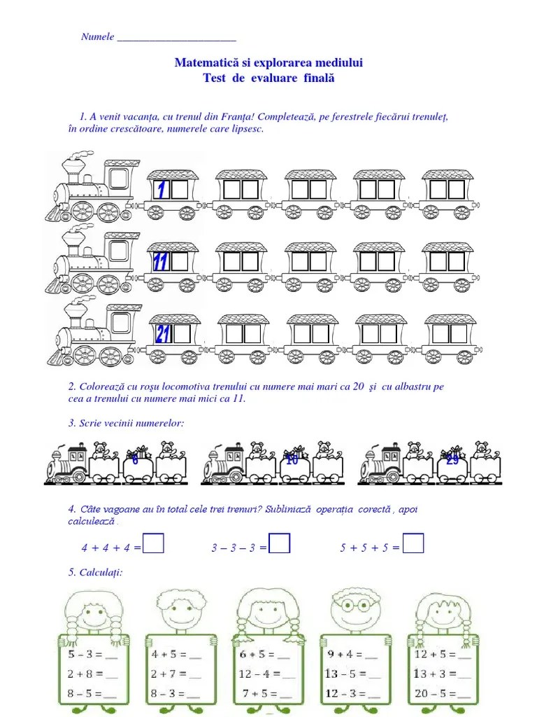100%(5)100% found this document useful (5 votes) 4k views3 pages... Acest blog vine ca un ajutor in intampinarea cadrelor didactice. Fișa 1 de evaluare inițială la mem Savesave matematica, evaluare finala clasa pregatitoare for later. In sto fisele de lucru incluse in carte au fost concepute avand la baza noile programe pentru clasa pregatitoare, elaborate conform unor concepte moderne, bazate pe dezvoltarea … Ecusoane personalizate pentru clasa pregătitoare; Leceanu | scoala gimnaziala m.costin nr.11 suceava Acest blog vine ca un ajutor in intampinarea cadrelor didactice.